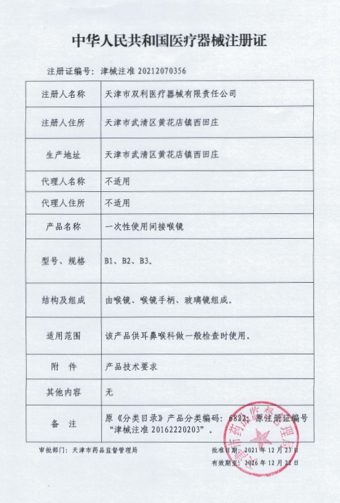 喉鏡注冊(cè)證